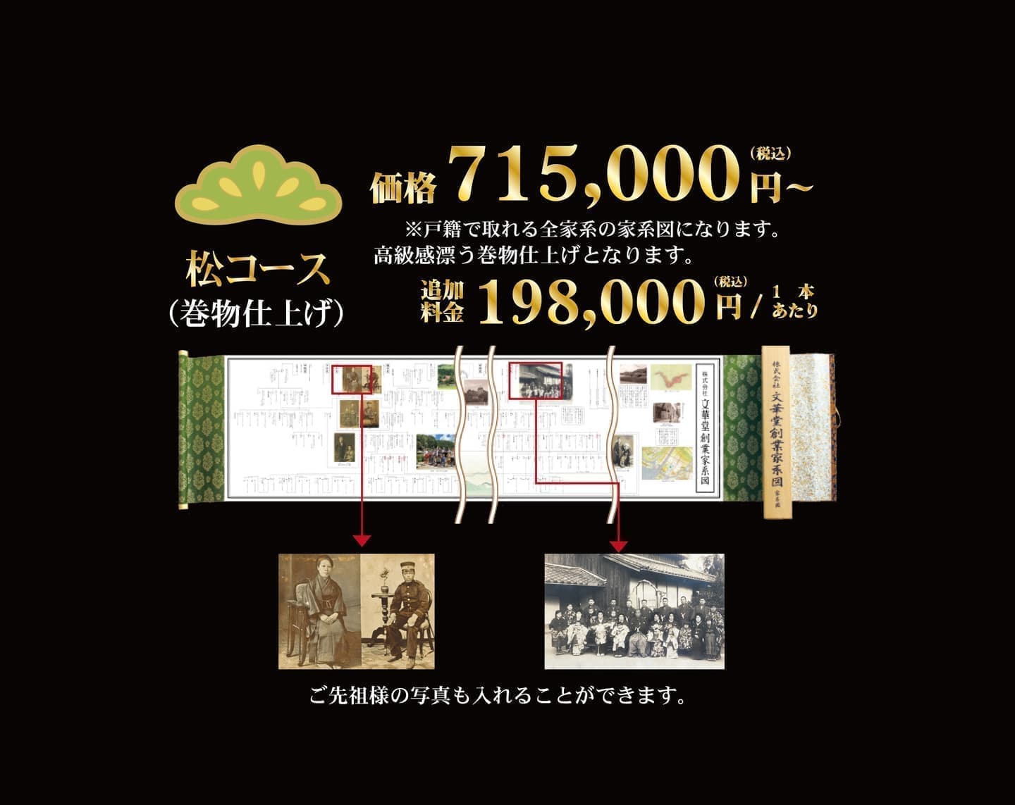 家系図は自主制作も可能となります。ただ、その際依頼時とどれだけの違いが出るのか知った上でご検討いただければと思います