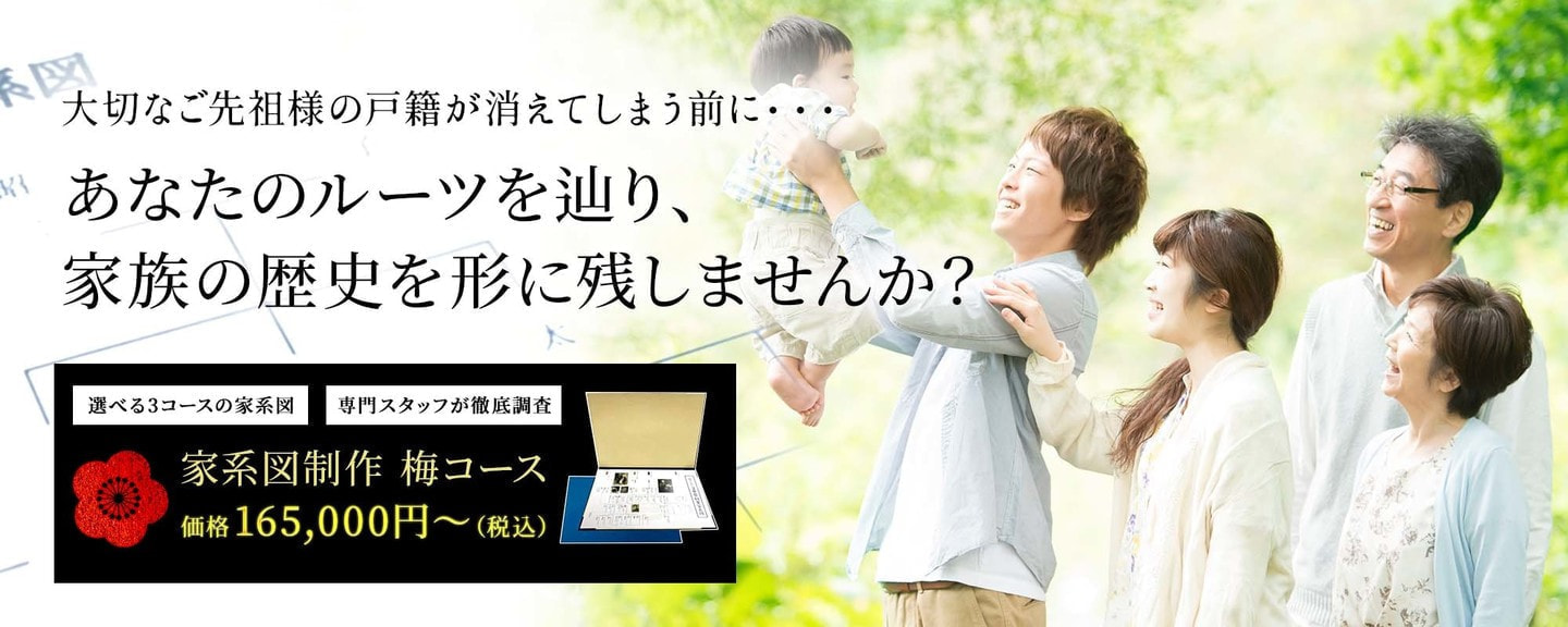 弊社が行っている業務は、あくまでも家系図づくりの代行業です。 そのため、誰でも自分で家系図づくりを行うことが出来ます。実際に自力で調査に取り組んで家系図づくりをさせる方もいらっしゃいますが、全国からの戸籍集めや戸籍の正確な読取りに苦労して、途中で諦めてしまう方が多いのも事実です。