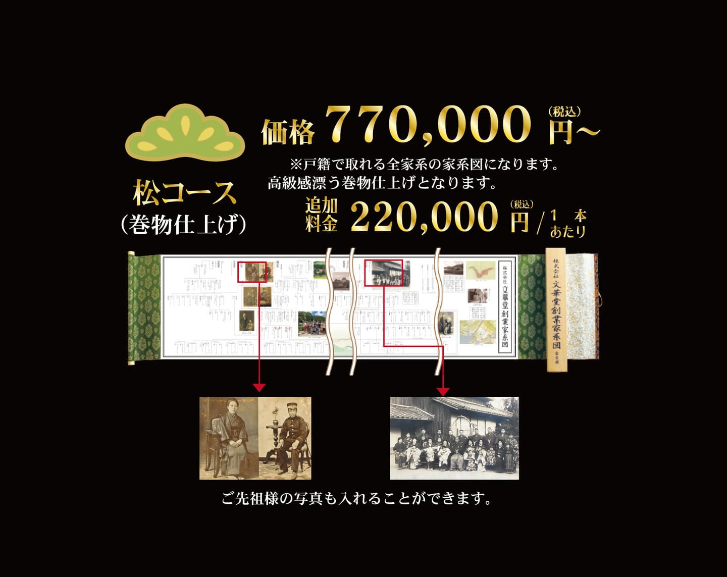 家系図は自主制作も可能となります。ただ、その際依頼時とどれだけの違いが出るのか知った上でご検討いただければと思います